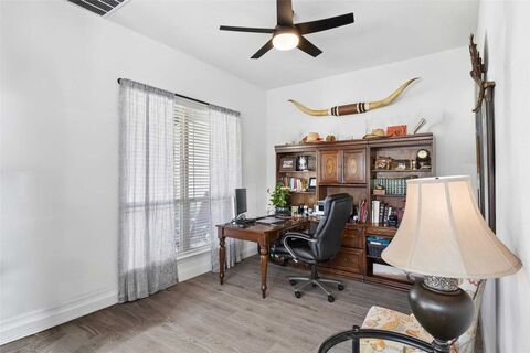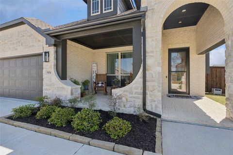 Don't miss this beautifully decorated, better than new home Dogwood III from Bloomfield Homes. This is a pristine home which welcomes you in through the oversized front porch that you can relax and gather on. Upon entry of this home you will see a private study to the left, but look ahead and you will see soaring ceilings and a very open kitchen, dining and living area with a stone fireplace with gas logs. Your eyes are carried to a wall of windows overlooking the backyard and covered patio. This home offers a deluxe Kitchen with a beautiful grand island with granite, stainless appliances, gas cooktop. The soaring ceilings with the plantation shutters in the upstairs wings is a wonderful accent to this open floorplan. Two secondary bedrooms and a bathroom off of hallway from kitchen downstairs. Primary bedroom is on the back of home overlooking backyard with a wonderful ensuite bath. Upstairs is the private suite with gameroom, computer area, bedroom and bathroom.