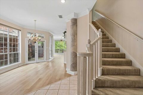 Nicely maintained Lochngreen Village gated townhome backing to the canal. This 3 bedroom, 2 full bath and 1 half bath townhome features walls of windows with abundant natural light, an open kitchen, large bedrooms and more. Walk into lots of windows from the dining room, kitchen and through to a large living area with built-in cabinets and a view of the private deck and canal. The large primary bedroom suite upstairs also has a wonderful view of the canal, a walk-in closet and large primary bedroom. The two secondary bedrooms share a Jack and Jill bathroom. The front patio has a gate leading to a private deck overlooking the canal. The gated community also features walking trails and green spaces. Located only 10-15 mins from Cowboys Stadium, Globe Life Field, Six Flags and Texas Live for sports, concerts and the Arlington entertainment area.