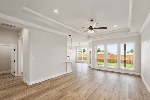 2% EXCLUSIVE INCENTIVE OFFERED FOR BUYERS! UP TO $7,358 IN CONCESSIONS! Quality Construction From Start To Finish! Gorgeous new construction home in the heart of Mabank! This 4-2-2 provides a very spacious & versatile floor plan with a fourth flex room that could serve as a bedroom or office. Very open concept in living, kitchen, & dining areas. Beautiful finish outs featuring, tray ceilings, recessed lighting, crown molding, rounded corners, quartz countertops, tile back splash, & luxury vinyl plank flooring. Great split bedroom arrangement with master suite that offers vanity with dual sinks, lighted makeup vanity, large fully tiled shower, soakingtub & his-hers walk-in closets. Wonderful storage space through out the home. Great covered patio with ceiling fan. Exterior features include fully sprinkled-sodded lawn, flood lights, gutters, & stained wood privacy fenced back yard. Stone Meadow subdivision is a prime location with close proximity to schools, shopping, dining, Cedar C
