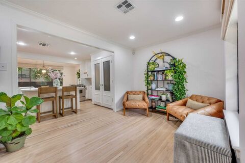 Tucked into the heart of Midway Hollow and zoned to sought-after Withers Elementary, this thoughtfully updated home blends timeless character with fresh, modern touches. Purchased in 2021, the home has since undergone a series of tasteful upgrades, including a beautifully remodeled kitchen designed for both everyday living and effortless entertaining. The entire interior has been freshly painted, creating a light, cohesive feel throughout. Designer wallpaper adds charm and personality in the nursery and bathroom, while recently refinished hardwood floors bring warmth and polish to the space. Custom Texton shades have been installed throughout the home, offering both style and function with a clean, elevated look. Step outside to a spacious backyardperfect for hosting, play, or simply enjoying a quiet evening outdoorswith plenty of room to add a pool or create your own private oasis. Situated in one of Dallas most desirable neighborhoods, this home offers not only comfort and style,