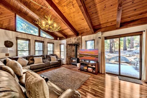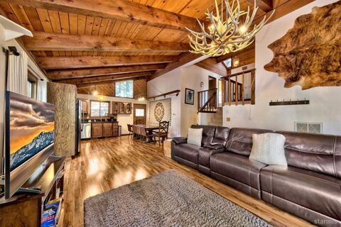 Charming split-level Tahoe chalet located in the desirable Tahoe Paradise neighborhood. This property enjoys an exceptional setting with Conservancy land on two sides and views overlooking the scenic