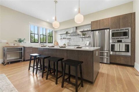 Reynoldstown is one of those neighborhoods that earns its reputation street by street. Built in 2017, this Modern Farmhouse on Kirkwood Ave SE sits squarely in the middle of it, and the location alone tells a story worth knowing. The Atlanta Beltline runs right through the heart of the community, putting Krog Street Market, Inman Park, Old Fourth Ward, and Ponce City Market within easy reach. The home was designed with daily life in mind from the ground up. Rare alley access leads to a private rear drive, a practical detail that matters more than it sounds on a busy in-town street. The finished basement provides flexible space that most nearby homes simply do not offer. Clean lines and quality finishes carry through every room, creating spaces that feel contemporary without sacrificing warmth.The kitchen is the centerpiece of the main living level. Sleek modern cabinetry, a full suite of organizational storage, and a well-considered layout make it genuinely functional for both