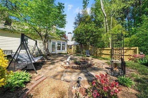 A true gardeners retreat and a special haven for nature lovers, this home in The Cottages of Roswell offers a rare blend of outdoor beauty and effortless, one-level living. Ideally located just minutes from the energy of Canton Street and the green space of Roswell Area Park, this home delivers both convenience and a peaceful setting to enjoy every day. From the inviting front porch to the light-filled interior, the home is designed for easy, comfortable living. The open-concept layout features two bedrooms and two baths, with a beautifully updated kitchen showcasing white cabinetry, granite countertops, a stone backsplash, under-cabinet lighting, and a newer microwave/convection oven. Fresh paint throughout, new lighting, and new carpet create a clean, cohesive feel, while a smart Rheem thermostat adds everyday convenience. The living room, anchored by a fireplace, flows seamlessly into a tiled sunroom that offers flexibility as a sitting area, media room, office, or reading retreat,