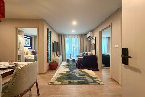 These offplan 2-bedroom condos and penthouses in Kamala, Phuket include a dedicated pet-friendly building. The design draws from Mediterranean architecture, with soft curves and arched detailing shaping the overall look.