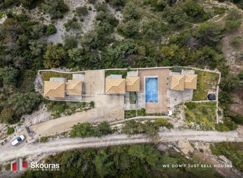The outdoor area is highlighted by a 52.5 sq.m. swimming pool situated between the residences, as well as ready infrastructure for a jacuzzi with electrical and plumbing connections. The property also features an automatic irrigation system, a water storage tank, and balconies on both the ground and upper floors with panoramic sea views. It is located in a quiet setting, just a few minutes from Egremni Beach, one of the most iconic beaches in Greece, while also offering easy access to shops and traditional villages in the area. This is an excellent opportunity both for private use and for high-standard tourist exploitation.